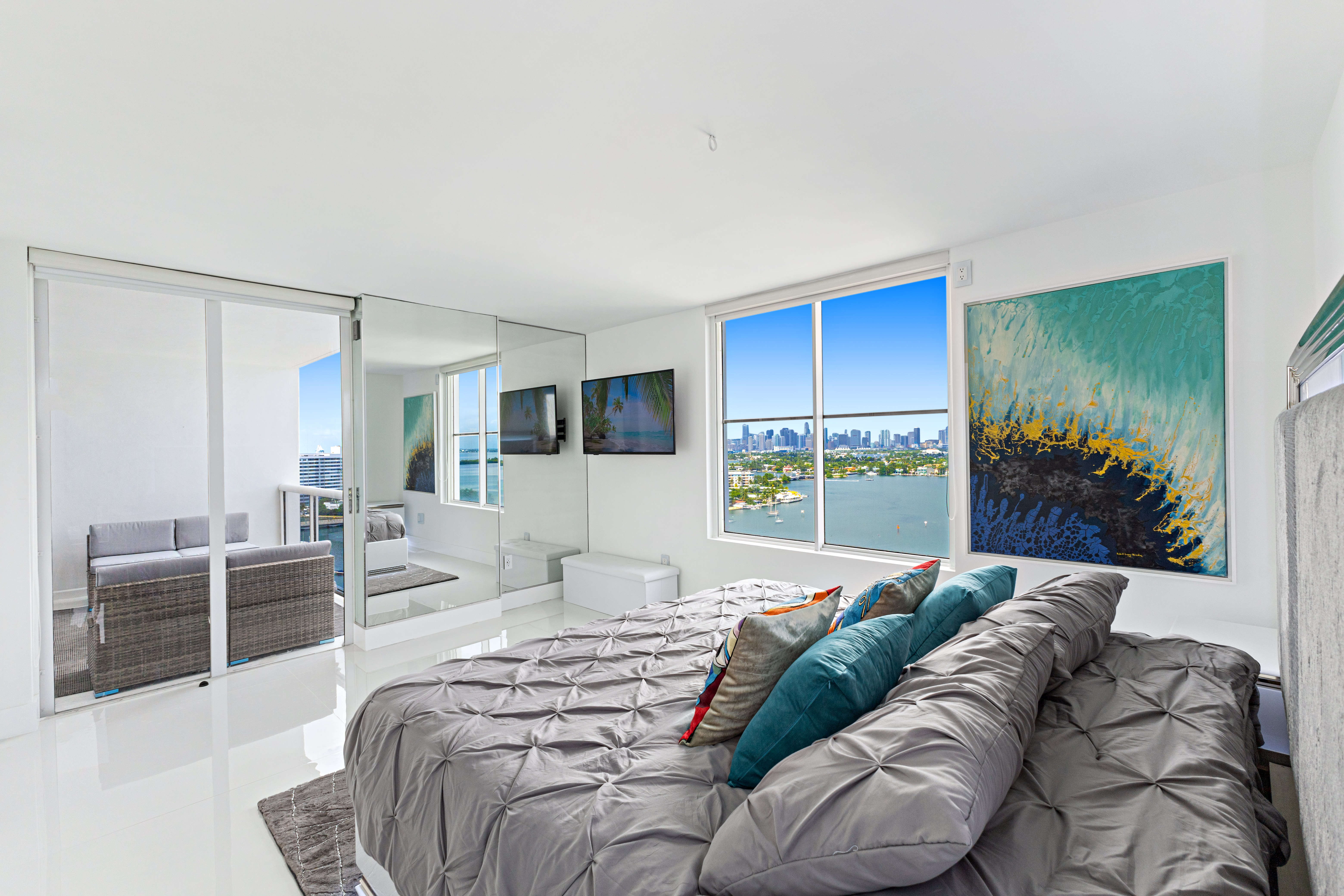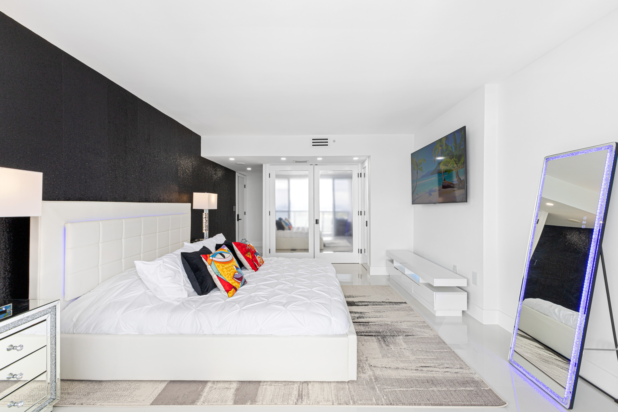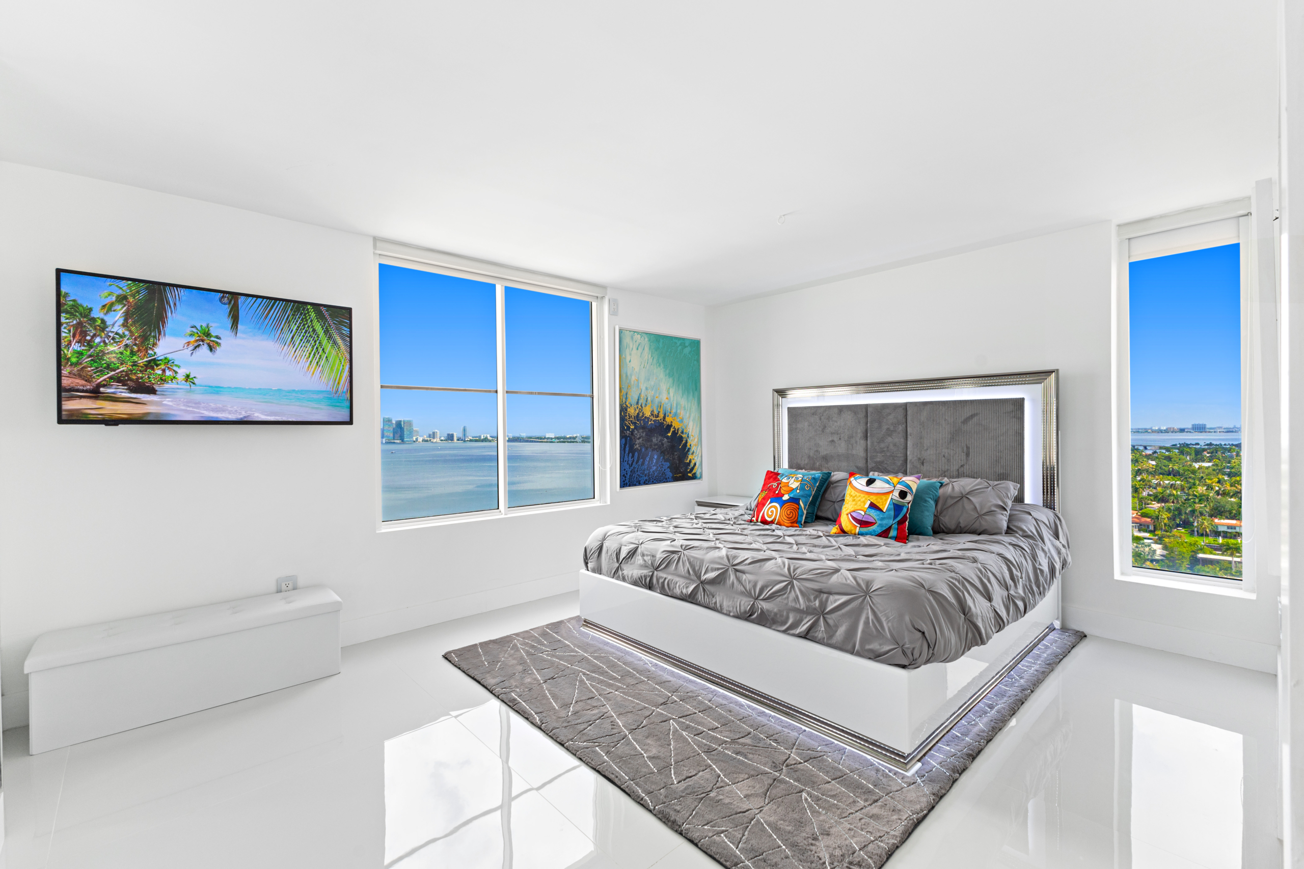 The building offers exceptional amenities including 2 outdoor pools, a fully equipped gym, and 24-hour concierge service. The location is the best part — just 10 minutes walk to Lincoln Road, Miami Beach, Florida.